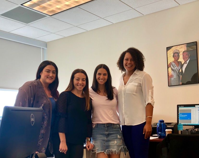 Pictured with Raquel at the Wildes & Weinberg Miami offices, located at 18851 NE 29th Avenue, Suite 700, Aventura, FL 33180, are attorney Caroline Gabela-Monteiro, senior paralegal Corinne Durso and paralegal assistant Secora Hopkins.