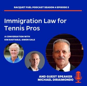 Managing Partner Michael Wildes is pleased to share Michael DiRaimondo’s podcast on Immigration Law and Tennis. Michael serves Of Counsel to the firm and on this podcast, he discusses the complexities of hiring international tennis professionals. In addition to being a seasoned immigration attorney, Michael is also a Certified Tennis Pro and Club Owner. To listen to the podcast click here: https://www.racquetfuelpodcast.com/episodes/immigration-law-and-tennis-with-michael-diraimando .