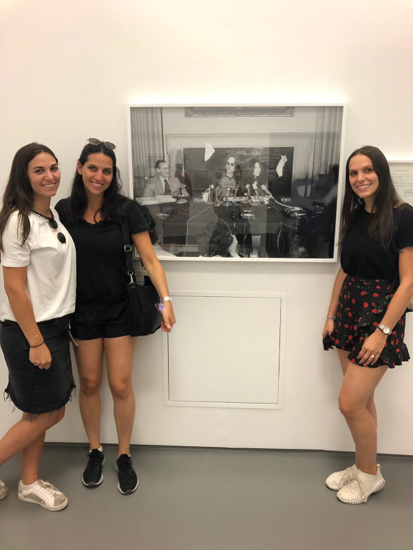 The art of John and Yoko, which focuses on the collaborative art projects for peace undertaken by Yoko Ono and John Lennon, is currently on exhibit at the Foundation Phi in Montreal, QC. The final piece of the carefully curated exhibit shows John and Yoko, together with Founding Partner Leon Wildes, during their 1973 press conference, in which they announced the idea of “Nutopia” while fighting to remain in the United States. On a recent trip to Canada, Leon Wildes’ granddaughters paid tribute to their grandfather and posed alongside the picture. August 2019.