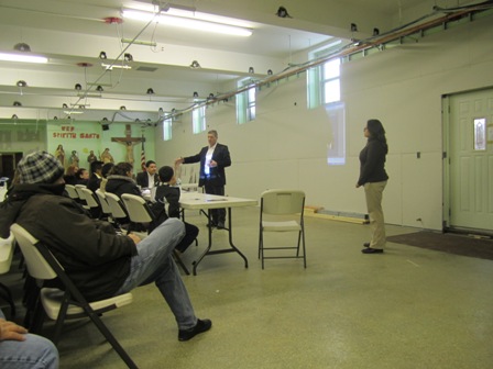 Immigration Lawyer Michael Wildes lecturing Colombian Community of Hackensack in St. Francis Church.