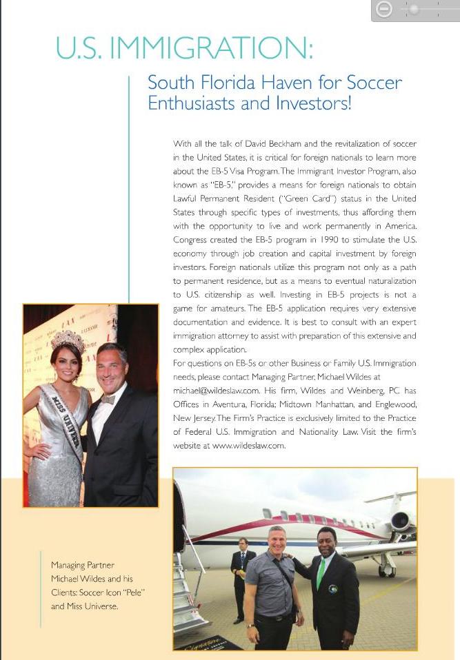 Michael Wildes and the Immigration Law Offices of Wildes and Weinberg catering to Soccer Enthusiasts and Investors in Miami