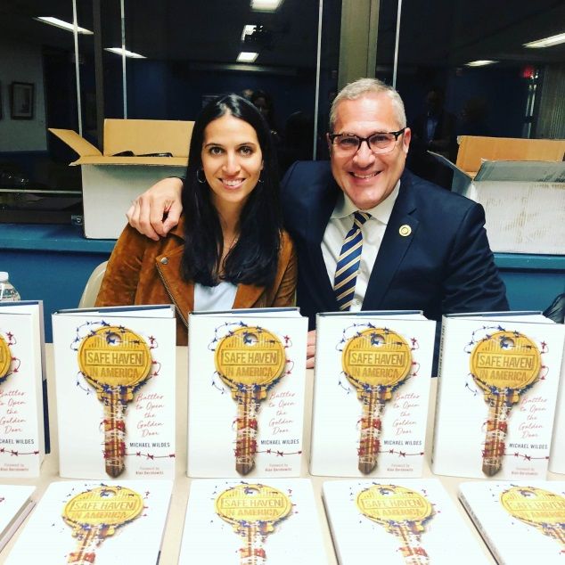 On October 15, 2018, Michael Wildes held an author Q & A at the Englewood Public Library, Englewood, NJ to discuss his new book, Safe Haven in America: Battles to Open the Golden Door. Raquel Wildes, Michael’s daughter, who holds a B.A. from Columbia University, an M.S. from Columbia University School of Journalism, and is a third year law review student at The Benjamin N. Cardozo School of Law in New York City was the moderator for the evening.