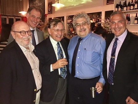 PICTURED WITH MICHAEL ARE COLLEAGUES AND HIS OWN OLD PROFESSORS FROM WHEN HE ATTENDED THE LAW SCHOOL: (L TO R) PROFESSORS BURT LIPSHIE, MICHAEL HERZ, STEWART STERK, AND CHARLES YABLON. OCTOBER 2017.
