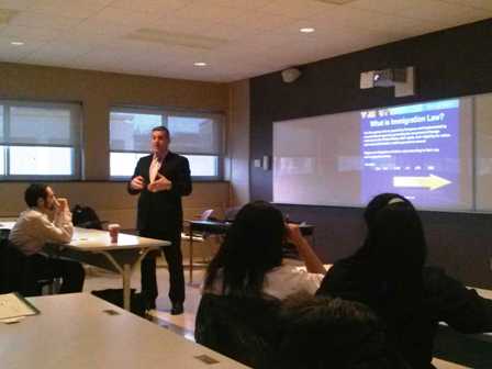 On March 21, 2013, international F-1 student visa holders from the classes “Finance and Accounting for Managers” and “Strategic Sourcing and Outsourcing” were privileged to hear from Managing Partner Michael Wildes, of Wildes & Weinberg, P.C.  Mr. Wildes lectured the students on U.S. Immigration and Nationality Law with an emphasis on post graduate work including OPT, immigration compliance/work authorization (E-verify), as well as the procedures necessary for foreign born students to follow if they wish to remain and work lawfully in the United States. He discussed the various types of visa’s (i.e. B-1/B-2 visitor visa, F-1 student visa, H-1B skilled professional visa, L-1 intra-company transferee visa) as well as the path to lawful permanent resident status (green card holder) and eventually U.S. citizenship.  Mr. Wildes outlined the policies involved, discussed pertinent deadlines for the application processes, and how to maintain good status and not in violation of our nations immigration rules. Throughout the presentation, Mr. Wildes fielded questions posed by the students and provided answers in the hope that the students would gain a clear understanding of the information given.