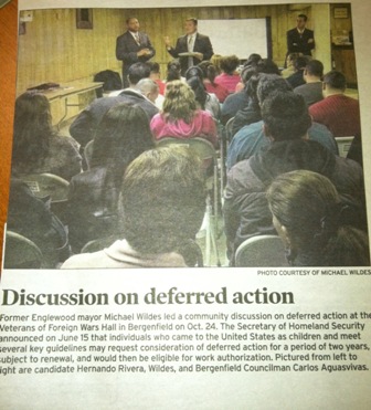 On October 24th, Former Englewood Mayor Michael Wildes, Managing Partner of Wildes and Weinberg P.C., led a community discussion on deferred action at the Veterans of Foreign Wars Hall in Bergenfield, New Jersey. The Secretary of Homeland Security announced on June 15, 2012, that individuals who came to the United States as children and meet several key guidelines may request consideration of deferred action for a period of two years, subject to renewal, and would then be eligible for work authorization.