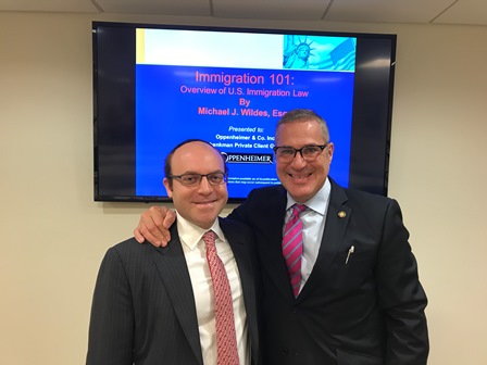 Managing Partner Michael Wildes, together with Jonathan Shenkman, Financial Advisor/Omega Portfolio Manager, oppenheimer & Co. inc, offers seminar entitled “Immigration 101: Overview of U.S. Immigration Law” , November 2017.