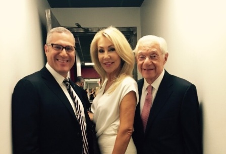 Spotted outside the Good Day New York (FOX5) Green Room: Founding Partner Leon Wildes and Managing Partner Michael Wildes pose for a picture with Michael Feinstein, singer, pianist, and music revivalist, and Linda Thompson, former actress, beauty pageant winner, wife of Bruce Jenner, and songwriter/lyricist.  Leon and Michael were visiting Good Day New York to discuss Leon’s new book on the John Lennon case.