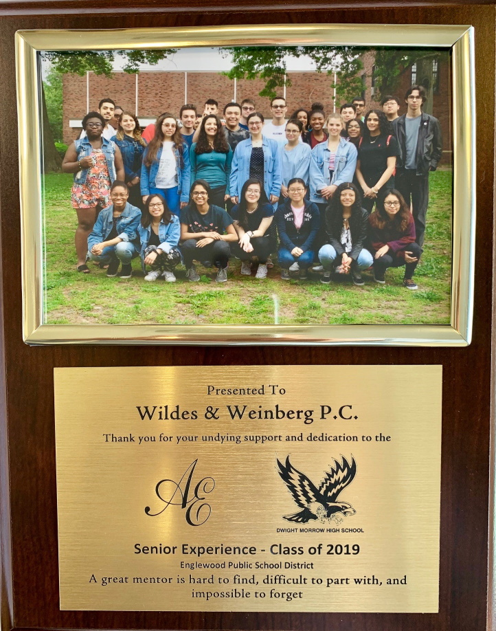 Once again the Englewood, New Jersey office of Wildes & Weinberg, P.C. participated in a year-long mentorship program organized through the Dwight Morrow High School/Academies@Englewood. September 2019.