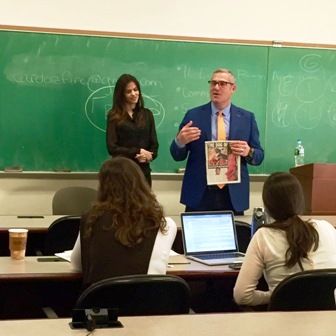 Hana Nitsche, internationally renowned supermodel, assists Managing Partner, Michael Wildes during his Business Immigration Law class at The Benjamin N. Cardozo School of Law in order to give a first hand narrative and explanation on O visas.