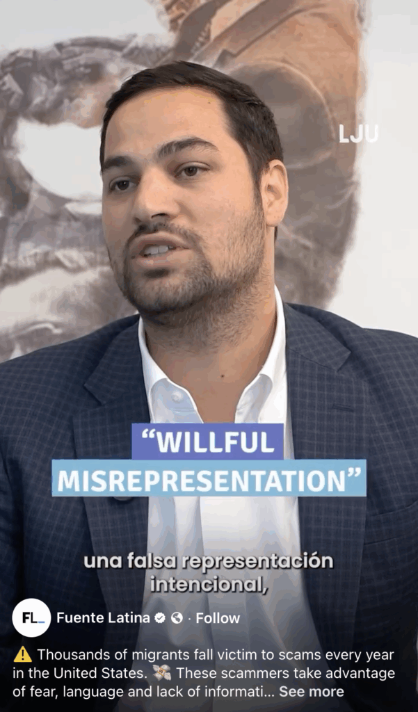 Associate Attorney Josh Wildes was recently interviewed by Fuenta Latina for a segment that focused on ‘notarios,’ immigration fraud, and the dangers of individuals pretending to be attorneys.