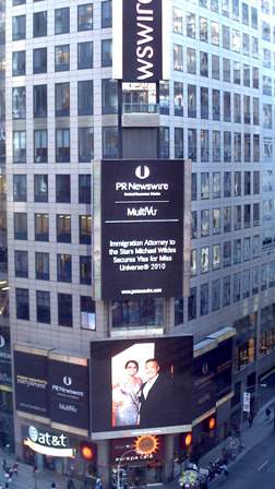 NEW YORK, NY—October 18, 2010-Wildes & Weinberg is pleased to announce that Managing Partner Michael Wildes secured a work visa for Jimena Navarrete, Miss Universe® 2010. She has been approved for her U.S. visa based on her outstanding work in her field. Miss Navarrete was born and raised in Guadalajara, the capital city of Jalisco, Mexico. She is only the second Mexican woman to win the highly sought after Miss Universe title, after Lupita Jones in 1991. Both women were crowned in Las Vegas, Nevada. Mr. Wildes was invited to Las Vegas by the Miss Universe Organization to congratulate her.